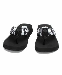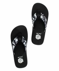 This sandal is a sunny-day standout with a cushioned footbed and a padded Y-strap in bold camo.