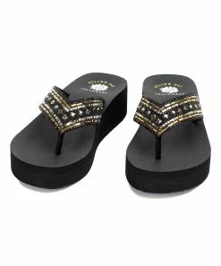 Step out in sparkly style when you slip into this pair of sandals featuring rhinestone embellishments and wedge heel.