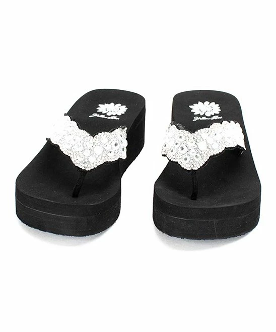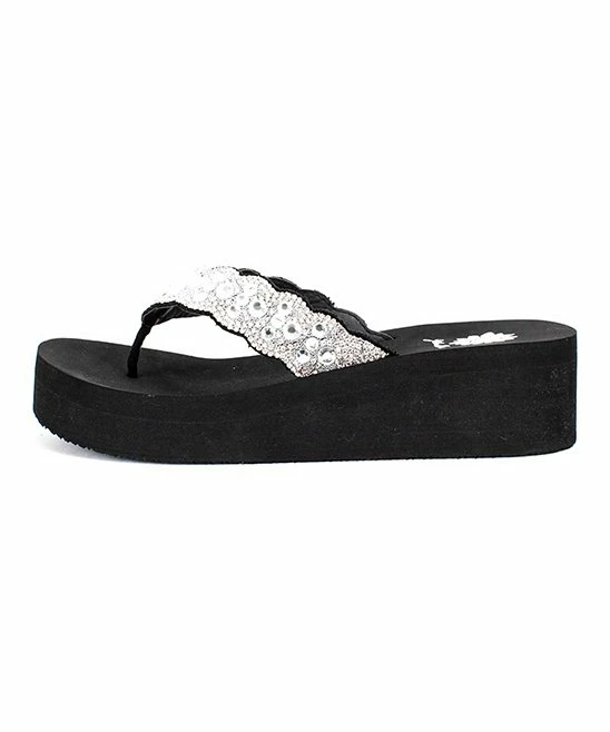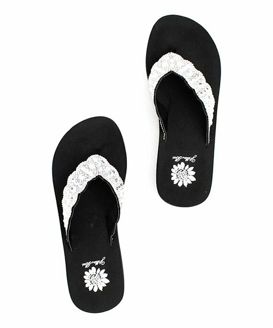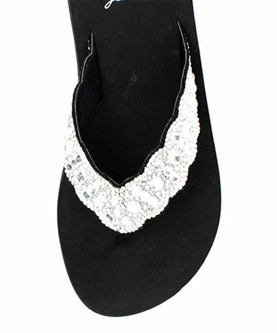 Add these sparkling sandals to your shoe collection featuring a classic hue and comfortable low heel for easy walking or hanging out on the beach.