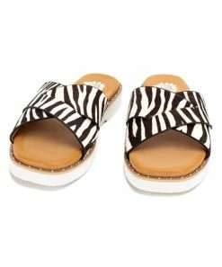 Add a chic accent to your ensemble with this sandal’s zebra stripe surplice strap. Padded footbed provides a layer of comfort.