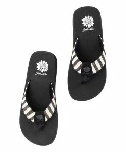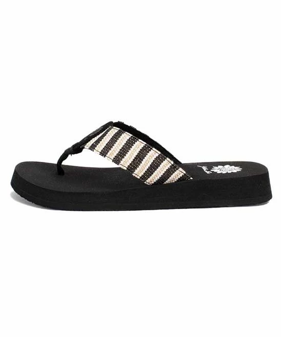 Casual slip-on sandal with a woven stripe Y-strap for a boho look. A cushioned footbed and traction sole allow all-day wear.