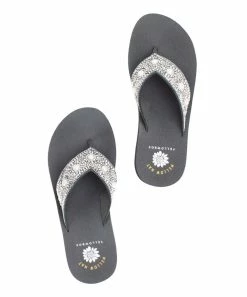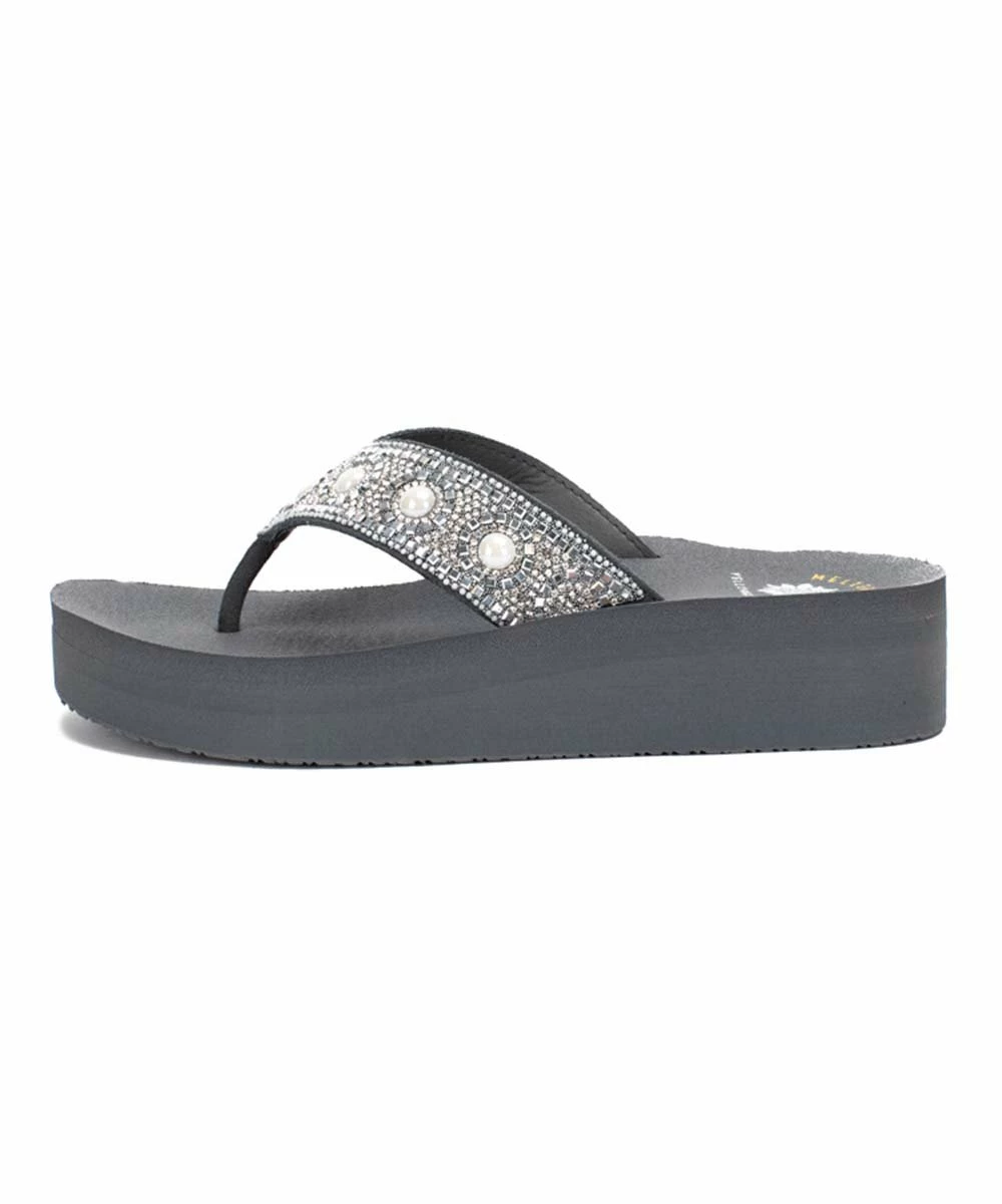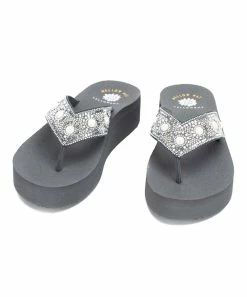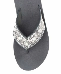 Rhinestone-embellished sandal featuring a comfortable padded footbed.