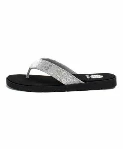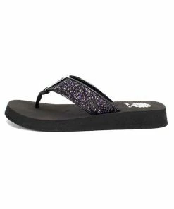 Chic wedge sandal featuring shimmering rhinestone accenting and a flexible rubber sole.