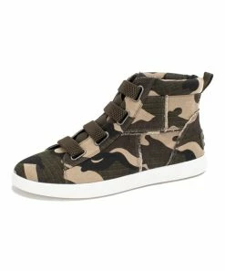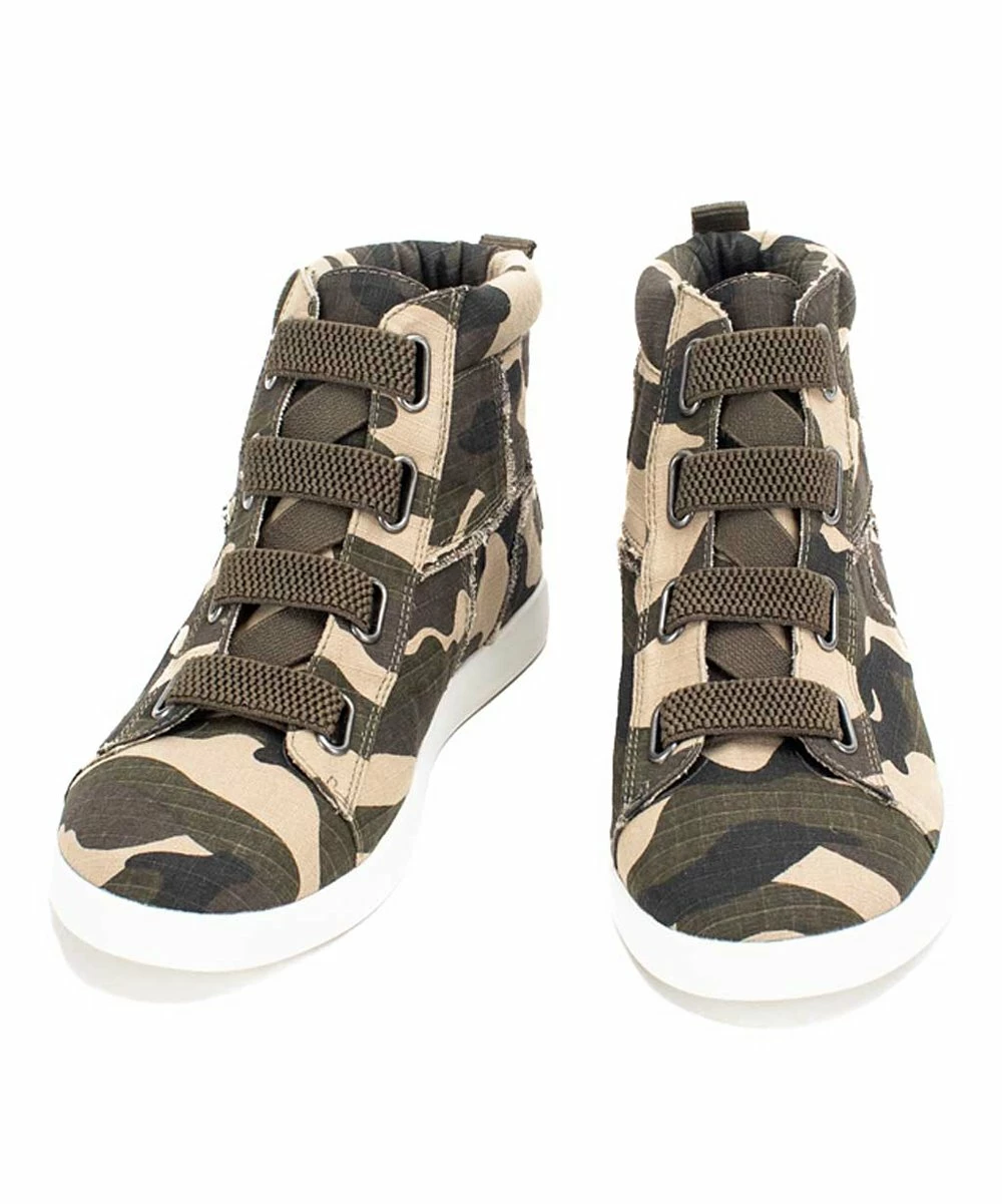 Enhance your casual ensembles with these hi-top sneakers showcasing a distressed canvas design and elastic laces for speedy on and offs.