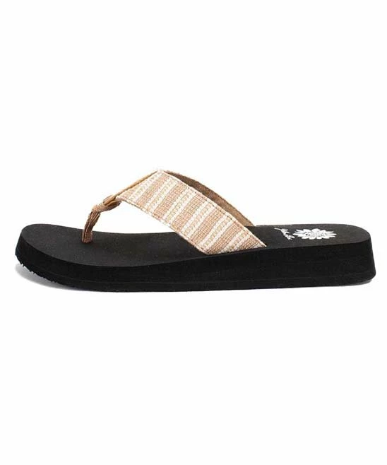 Casual slip-on sandal with a woven stripe Y-strap for a boho look. A cushioned footbed and traction sole allow all-day wear.