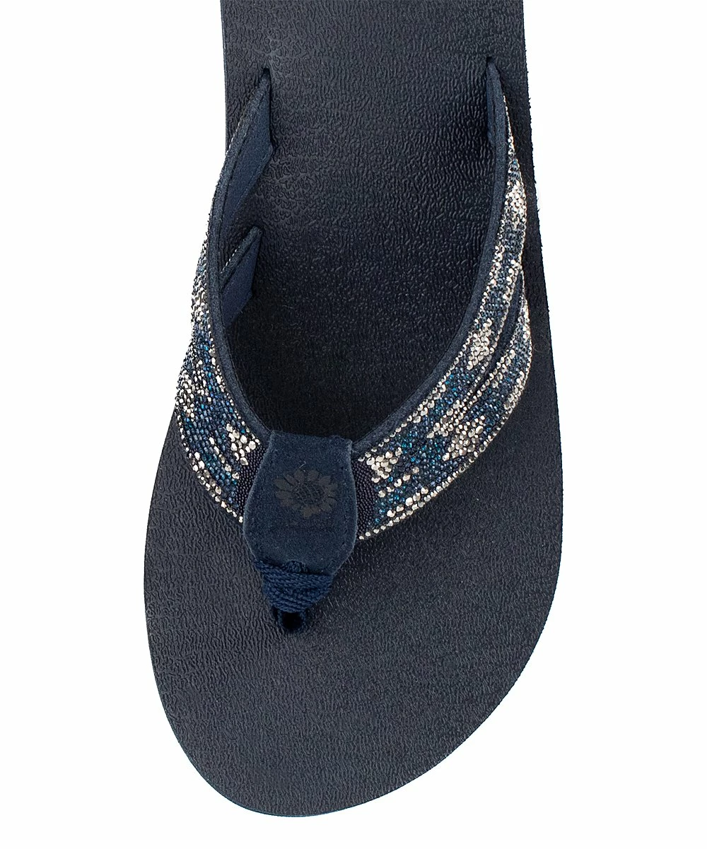 Step out in sparkly style when you slip into this pair of sandals featuring rhinestone embellishments on the double thong strap.