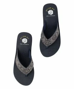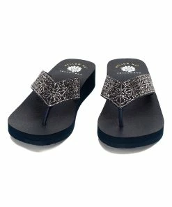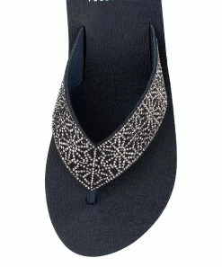 Step out in sparkly style when you slip into this pair of sandals featuring rhinestone-embellished thong straps.