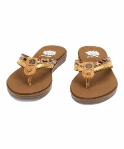 Shimmering rhinestone-embellished sandal featuring a flexible rubber sole and easy slip-on design.