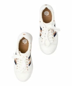 Show off chic style with every step wearing this sneaker featuring a glitter stripe detail and metallic grommets. Padded footbed for added comfort.